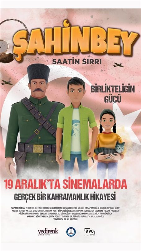 Bilal Arıoğlu’nun yönettiği ‘Şahinbey: Saatin Sırrı’, tarihi bilinç ve macerayı çocukların gözünden anlatan yerli bir animasyon olarak öne çıkıyor. Gaziantep savunmasını araştıran bir grup çocuk, müzenin altındaki kastellerde gizemli bir saat keşfeder. Sultan II. Abdülhamit tarafından Şahinbey’e hediye edilen bu saat, açıklanamaz biçimde geçmişte yaşanan olayları onlara göstermeye başlar. Çocuklar saati bulunduğu yerden çıkarmaya çalışırken yalnız olmadıklarını fark ederler; peşlerindeki yabancılar, bu tarihi mirası tehdit etmektedir...