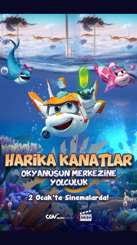 Chao Zhang’ın yönettiği ‘Harika Kanatlar: Okyanusun Merkezine Yolculuk’ (Super Wings: Journey to the Center of the World), sevilen animasyon serisini bu kez denizlerin derinliklerine taşıyor. Bilimsel denizaltı Comma, Mariana Çukuru’na sürüklenince ekip kendini okyanusun merkezinde nefes kesici bir maceranın içinde bulur…