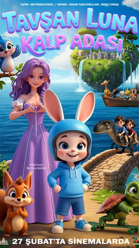 Buğra Kekik’in yönettiği animasyon ‘Tavşan Luna: Kalp Adası’, yardımsever Luna’nın, kötü bir timsahın istilasına uğrayan Kalp Adası’nda mahsur kalan arkadaşı Prenses Lila’yı kurtarmak için çıktığı yolculuğu anlatıyor. Tehlikelerle dolu bu macera, dostluk ve cesaret temalarını sıcak bir anlatımla çocuk izleyicilere sunuyor.