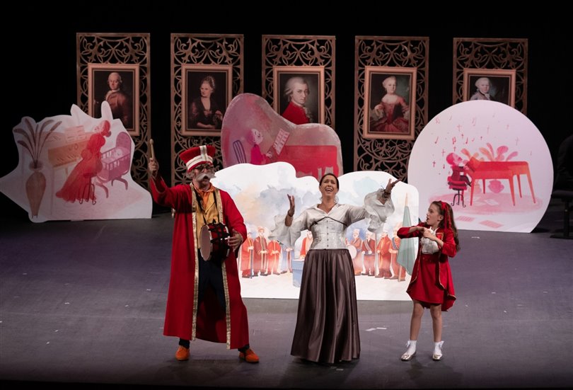 ‘Bay Majör’ün Müzik Yolculuğu – Mozart’; sahnede piyano, keman, viyolonsel ve soprano tarafından canlı olarak seslendirilen eserlere çocukların eşlik etmesini sağlayarak etkileşimli bir yapıda ilerliyor.