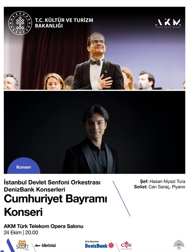 İstanbul Devlet Senfoni Orkestrası (İDSO) DenizBank Konserleri, Türkiye Cumhuriyeti'nin kuruluşunun 102. yılını kutlamak üzere hazırlanan ‘Cumhuriyet Bayramı Konseri’ ile devam ediyor.