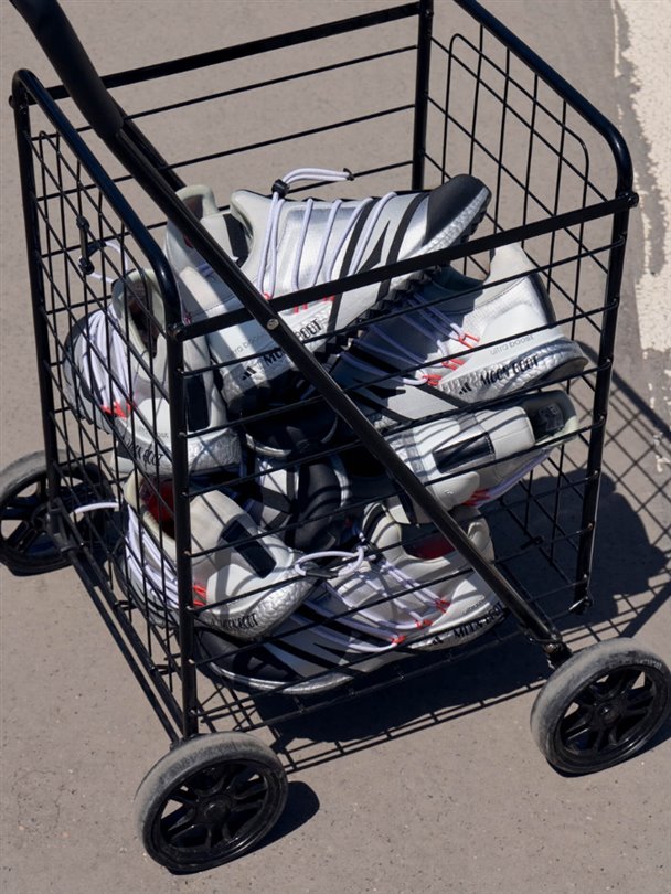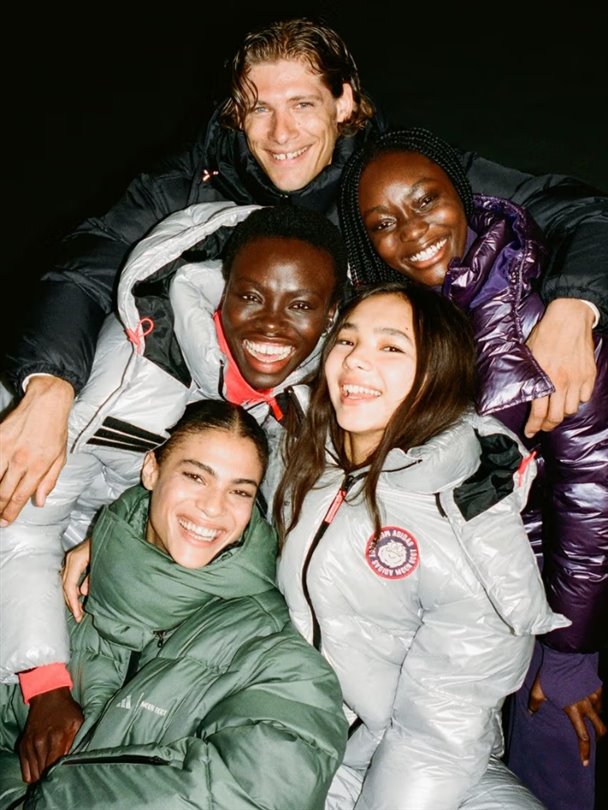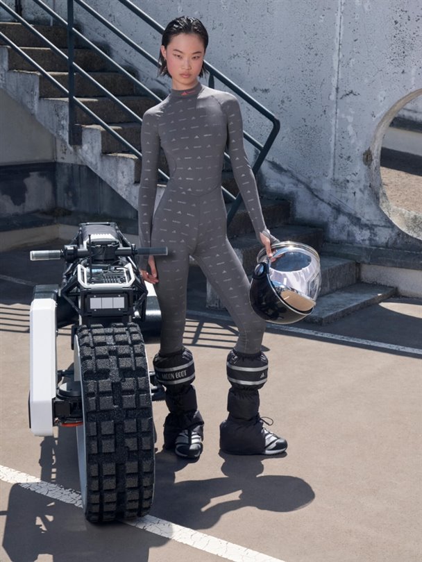 Ayakkabılara ek olarak, katmanlı seçenekler, koleksiyonu daha da zenginleştiriyor. Uzay kaskına benzeyen kapüşonlu şişme mont, çift markalı taytlar, üstler, eşofmanlar ve diğer kayak temalı siluetlerle tamamlanan giyim seçeneklerinin başında geliyor.