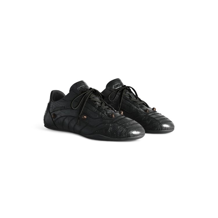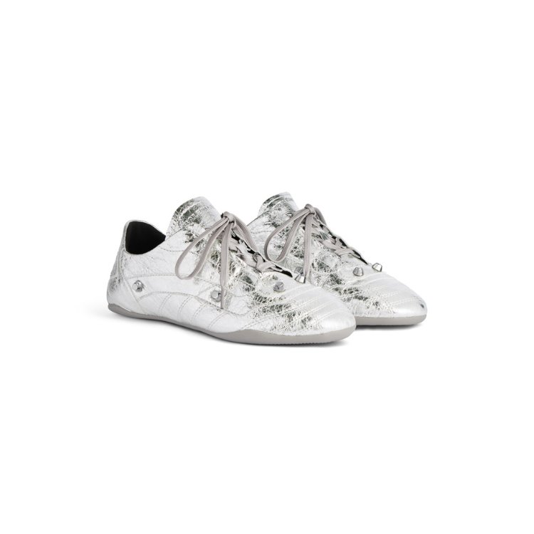 Balenciaga'nın işçiliği, küçük detaylarda kendini gösteriyor: Düz üstlü çiviler, tek renkli bağcıklar ve kıvrımlarını belirginleştiren üst dikişler.