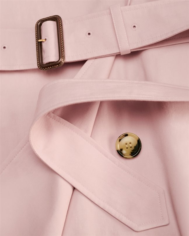 West Yorkshire bölgesinde bulunan tarihi Burberry fabrikasında, kısa elyaf pamuktan dokunarak üretiliyor ve arşiv niteliğindeki bej Burberry Check astar ile tamamlanıyor.