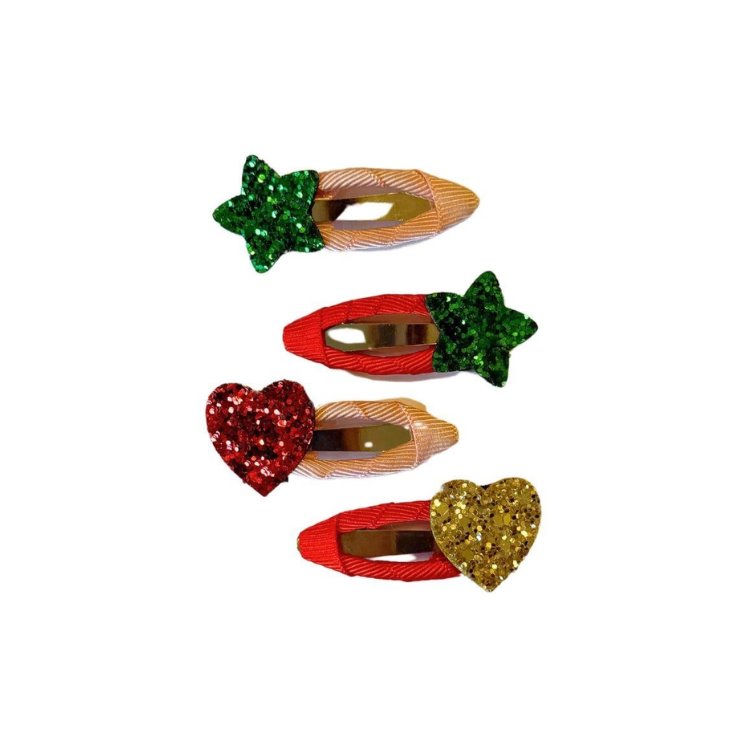 Yıldız ve kalp figürlü dört adet çıtçıt tokadan oluşan bu set, yılbaşı gecesi saçlara minik ama etkili bir ışıltı katacak.