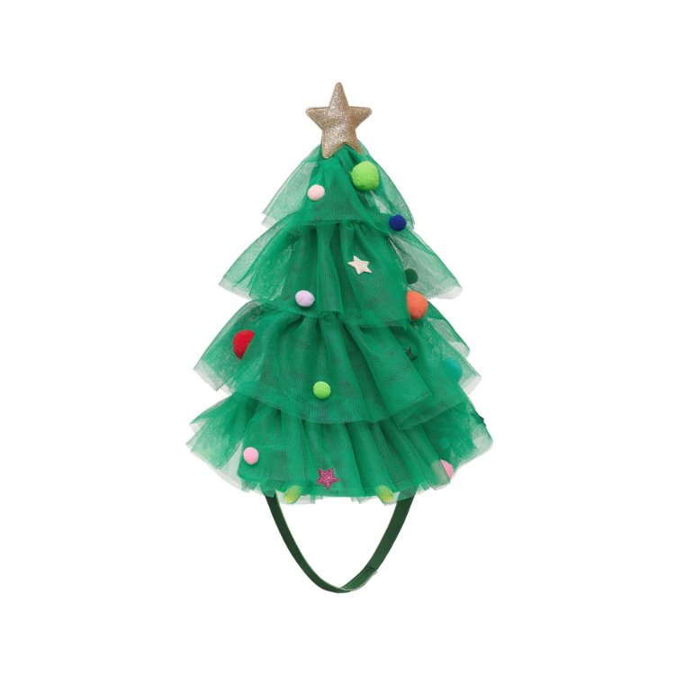 Rengârenk ponponlar, simli yıldızlar ve yumuşak yeşil tül katmanlarıyla tasarlanan bu taç, 3–10 yaş arası çocuklar için konforlu ve çok şık bir alternatif.
