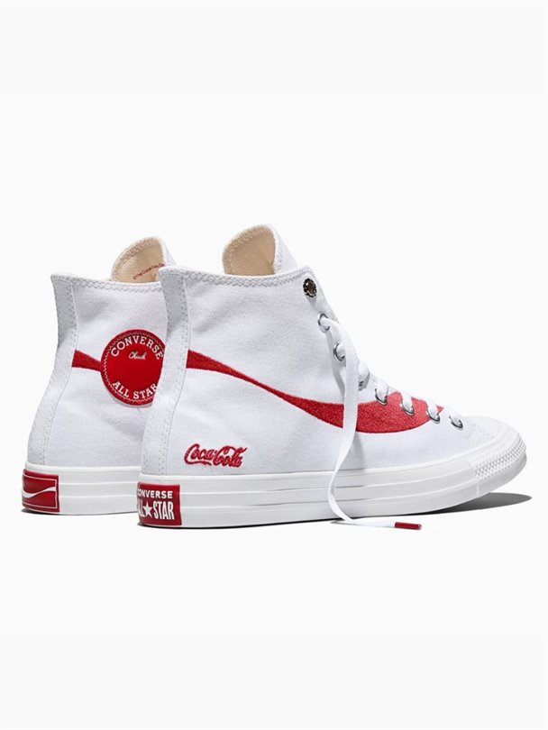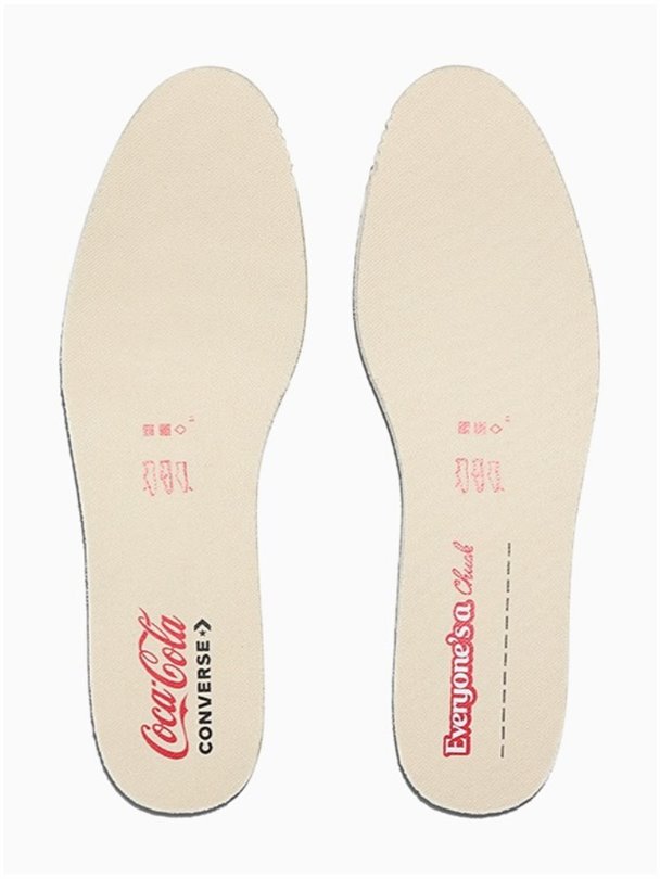 Koleksiyonda kırmızı, kutup ayısını simgeleyen beyaz, Diet Coke'a gönderme yapan parlak gümüş ve Coke Zero'yu temsil eden siyah olmak üzere dört farklı renkte Chuck 70 yer alıyor. Kırmızı çift, piyasaya sürülecek ilk model olacak. Kırmızı deri üst kısım, Coca-Cola'nın omurgasından uzanan ve alttaki iki deliği saran logoyu oluşturan ekstra bir deri parçasıyla çarpıcı bir şekilde bölünmüş. Dış tabanlar, orijinal Coca-Cola cam şişelerinin yarı saydam tonuna saygı duruşunda bulunuyor. Eşsiz bir detay ise ferahlatıcı kola grafikleriyle süslenmiş iç taban… Orta kısımlardaki markalı daireler, şişe kapaklarından esinlenerek eğlenceli bir dokunuş katıyor.