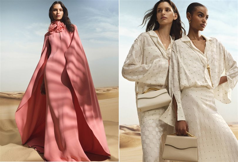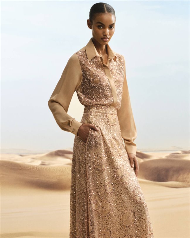 Bu palet, krem, pembe bronz ve sıcak nötr tonların zarif tınılarıyla adeta fısıldıyor. Koleksiyon, gösterişten ziyade, çöl ışığını anımsatan ince renk geçişleriyle dinginliği kutluyor. Bu ölçülü estetik, geçici trendlerden ziyade duygusal yankıyı vurgulayan, sessiz lükse yönelik daha geniş endüstri hareketlerini yansıtıyor.