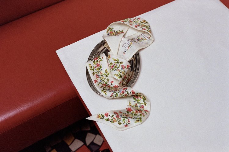 İpek kareler ise Çiçekli Kalp tasarımıyla konuyu devam ettirerek görselleri yapılandırılmış bir bahçeyi andıran bir şeye dönüştürüyor.