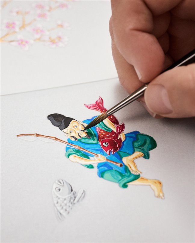 Escale au Mont Fuji'nin kadranı, hareketli bir başyapıt olarak karşımıza çıkıyor. Dört özel otomat, hikayesini hayata geçiriyor: