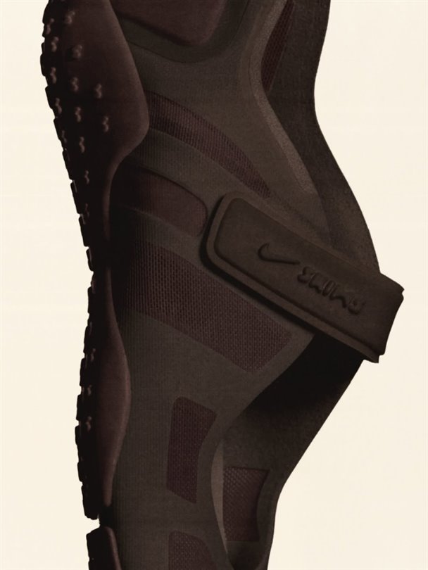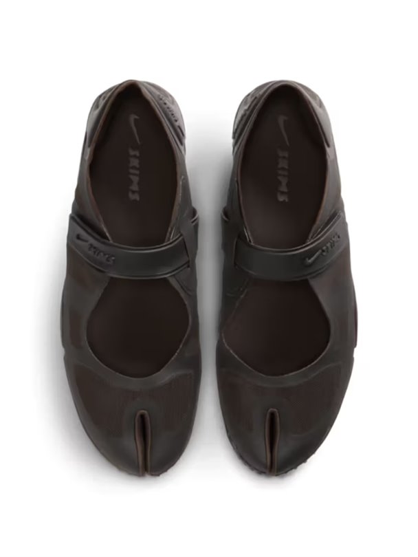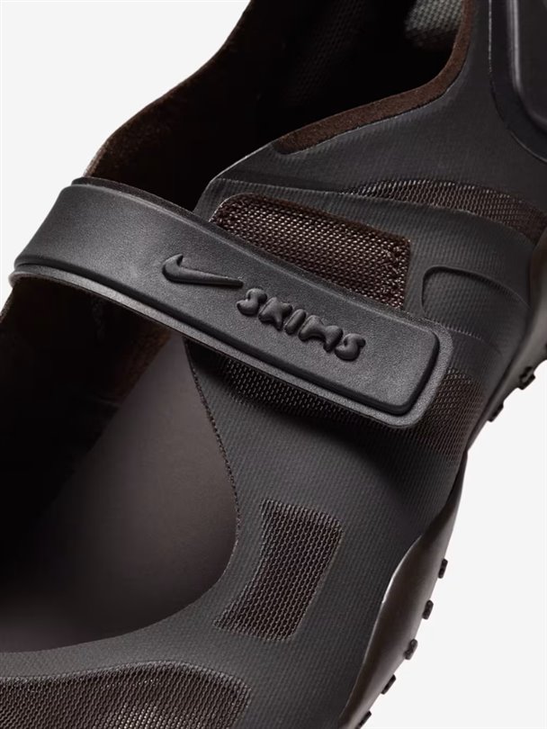 Markalama, orta kısımdaki kayışa net bir şekilde işlenmiş NikeSKIMS iş birliği logosuyla zarif ancak belirgin bir şekilde korunuyor.