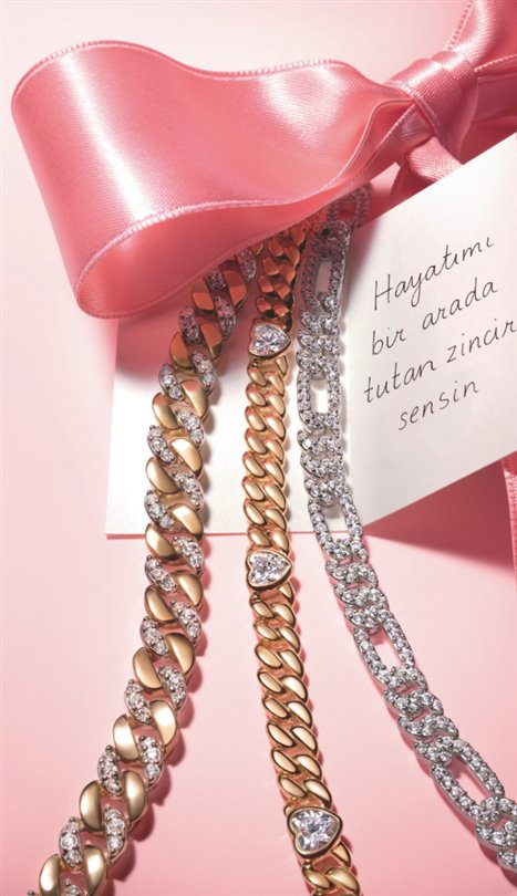 Küba zinciri tasarımlar, koleksiyonun modern ve güçlü duruşunu temsil ediyor. Paye Küba Zincir Bileklik, sade ve şık tasarımıyla gün boyu süren bir ışıltı sunuyor. İki-Tonlu Pavé Küba Zincir Bileklik, gümüş, 14 ayar altın kaplama ve pavé taşlarıyla lüks, özgüven ve başarıyı simgeliyor. Kalp Küba Zincir Bileklik ise kalıcı aşkın ve gücün sembolü olarak farklı bilekliklerle kombinlenerek kişisel bir ifade yaratmaya imkan tanıyor.