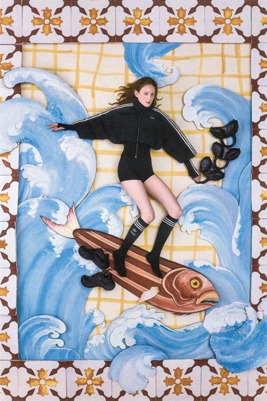 Macar fotoğrafçı Szilveszter Mako'nun görüntülediği kampanya da bu gerilimi yansıtıyor. Modeller, boyalı fonlar ve aynalı dokularla çerçevelenmiş, hareketin yerini durağanlığın aldığı pozlar veriyor. Görüntüler, ayakkabıları başrol oyuncusuna dönüştürüyor ve spordan ziyade oyuna odaklanıyor.