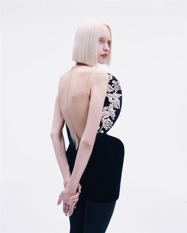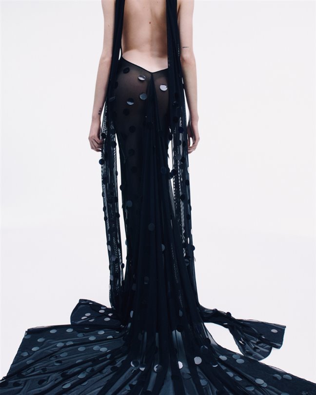 Son tema, göz alıcı süslemelere odaklanıyor. Işıltılı kristal detaylar, vücuda oturan elbiselerin üzerinde yükseliyor, şeffaf tül parçalar küçük tüy kümeleriyle kaplanıyor ve dar kesimli tasarımlar, pul şeklinde ince deri katmanlarıyla tamamlanıyor.