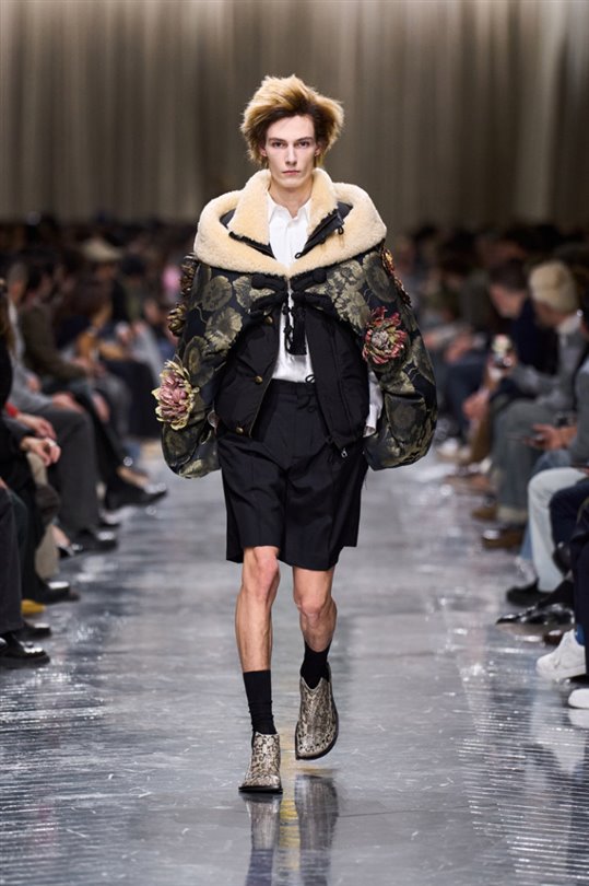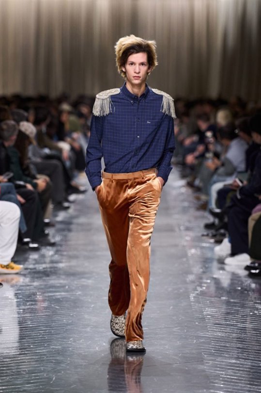Defilede; Jonathan Anderson’ın, Dior'un öncüllerinin mirasıyla da ustaca oynadığı görüldü. Hedi Slimane'ın rock 'n' roll eksantrikliği, yağmur damlası apoletli polo gömleklerde ve 2000'lerin başlarındaki kelebek baskılı yüksek belli pantolonlarda kendini gösteriyordu. John Galliano'nun fantastik tiyatrallığı ise dramatik kapitone yeşil paltolar ve büyük, yapraklı manşetlere sahip, yıpranmış tüvit kumaştan yapılmış bol kesimli resmi parçalarla yeniden canlandırıldı. Bunlara, enfes benzersiz jakarlarla süslenmiş devasa, şeffaf eşarplar eşlik etti.