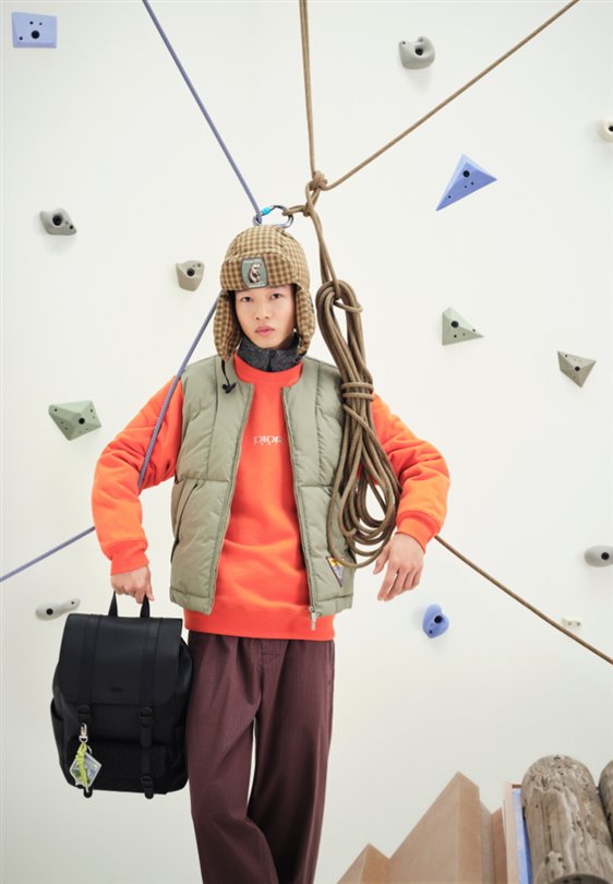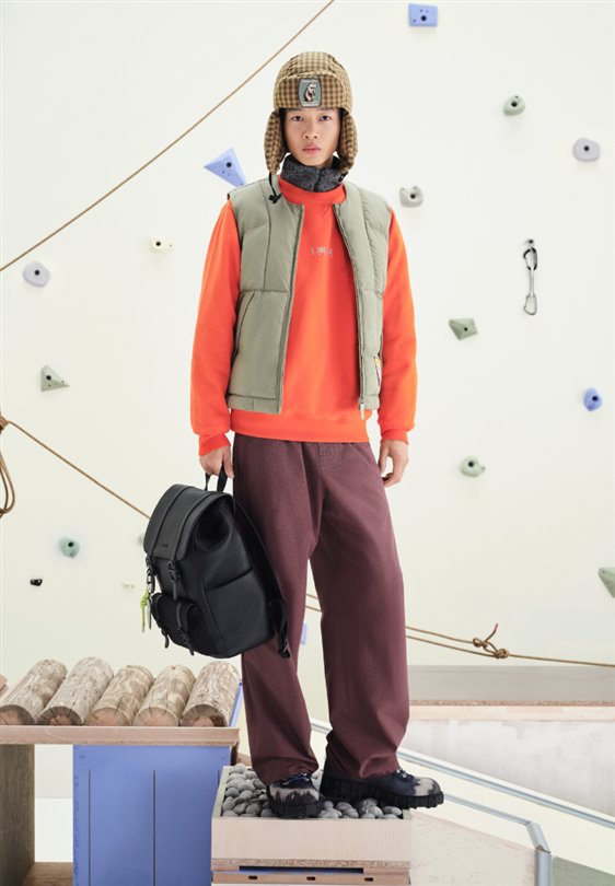 Açık hava kültürü ile lüksün kusursuz standartlarının birleşimi, formal ve günlük tarz arasındaki sınırları belirsizleştiren görünümlerle sunuluyor. Blazer ceketler ve balıkçı yaka kazaklar, kargo pantolonlarla ya da kayak pantolonlarıyla bir araya geliyor.