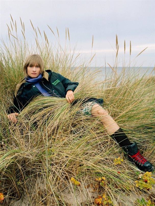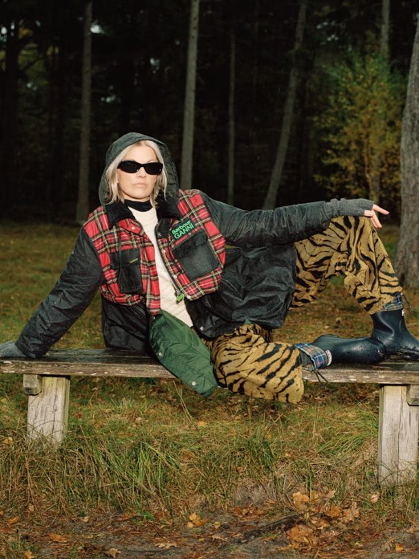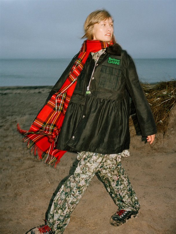 Ganni x Barbour, Ganni.com ve Barbour.com'da ve mağazalarda satışta.
