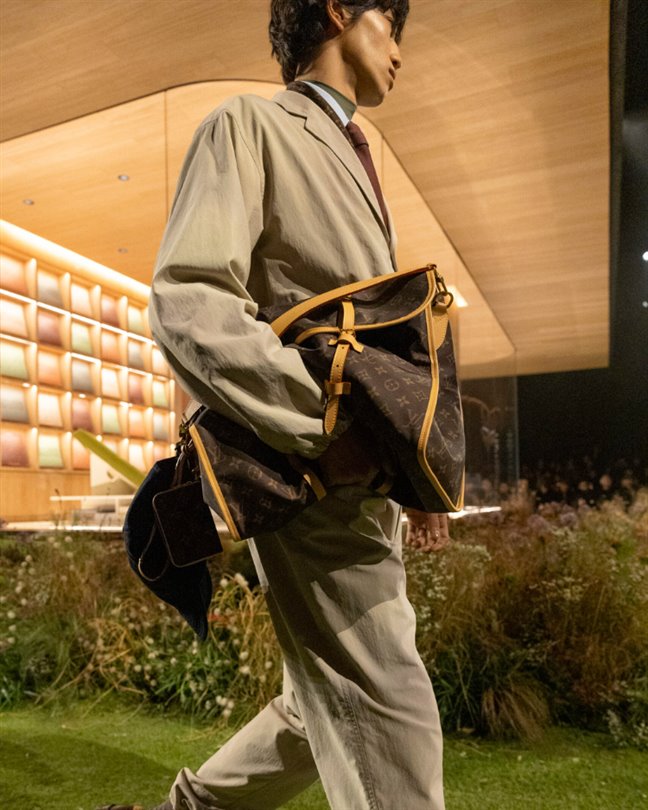 Aksesuar ve deri ürünlerde, LV Silk-Nylon'ın piyasaya sürülmesiyle Monogram, uzaktan deri gibi görünen ancak performans giysisi gibi davranan bir kumaş aracılığıyla yeniden yorumlanıyor. Monogram Vintage Vernis, rugan deriyi cilalı süetle değiştirerek, yüksek parlaklıkta bir yüzeyin altında yumuşaklık ve derinlik sunuyor.