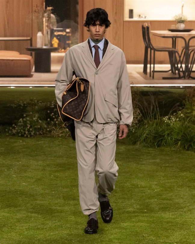 Çantalar, yağmur veya patina ile Monogram desenlerini ortaya çıkaran malzemelerle hava koşullarına, dokunmaya ve zamana tepki veriyor. Timsah derisi Speedy P9'lardan hareketli retro-fütüristik objelere kadar en istisnai parçalar bile işçiliği ve dönüşümü vurguluyor.