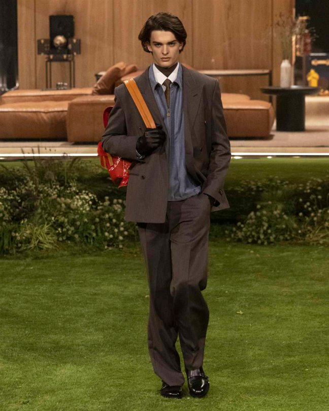 Klasik erkek giyiminden ilham alırken 1980'lerin retro-futüristik vizyonlarına da gönderme yapan koleksiyon, Pharrell Williams'ın ‘geleceğin züppesi’ olarak adlandırdığı tarzı sunuyor. Terzilik keskinliğini korurken, hacim ve rahatlık ile yumuşatılıyor.