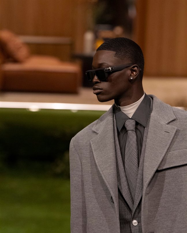 Bu ‘zamansız tekstiller’; dayanıklılık, uyarlanabilirlik ve performans önceliğiyle Studio Homme tarafından şirket içinde geliştirildi. Geleneksel erkek giyim kumaşları olan köpek dişi, balıksırtı ve kareli desenler; ışığı yansıtan teknik ipliklerle yeniden tasarlandı. Benzer şekilde, ipek ve chambray kumaşlardan üretilen ceketler, su geçirmez veya su itici özellik kazandıran membranlarla üretildi. Hatta resmi kumaşlar bile nefes alabilen, hafif özelliklerle donatılarak giysilerin bütünlüğünü kaybetmeden farklı ortamlara uyum sağlamasına olanak tanındı.
