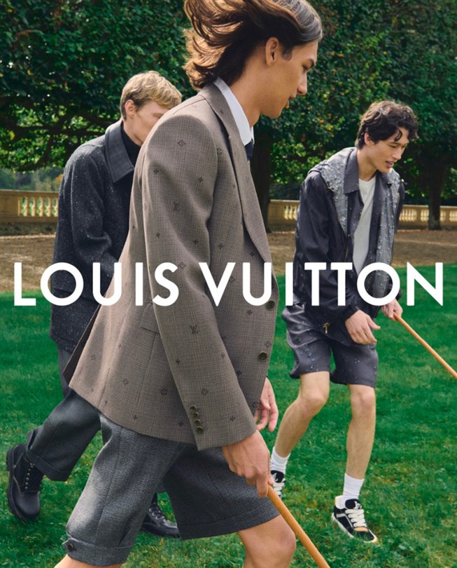 Koleksiyonda; şişme montlara dönüştürülmüş tüvitler, Monogram Surplus motifli kapitone yelekler ve markanın seyahat mirasından esinlenen ceketler yer alıyor. Orman yeşili, soluk altın ve kış meyvesi tonları, kostüme bağlı hissettirmeden yıpranmış kırsal duyarlılığı yansıtıyor.