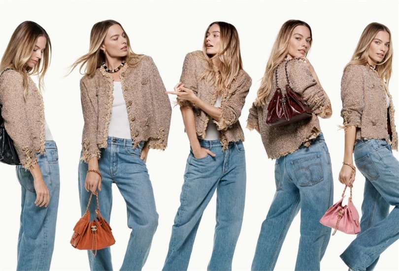 Chanel 25 için çekilen videoda, Robbie’nin farklı versiyonları; zincir saplı ve büzgülü çantanın farklı bir siluetini taşıyor.