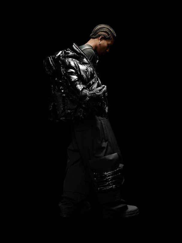 Kendi yaratıcı platformu AWGE'nin de başında olan çok yönlü sanatçı, asi ve sokak ruhunu yansıtan estetiğini Moncler'in lüks performans giyimine taşıdı.