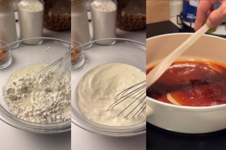 Nişastayı dört bardak su ile karıştırıp açıyoruz.