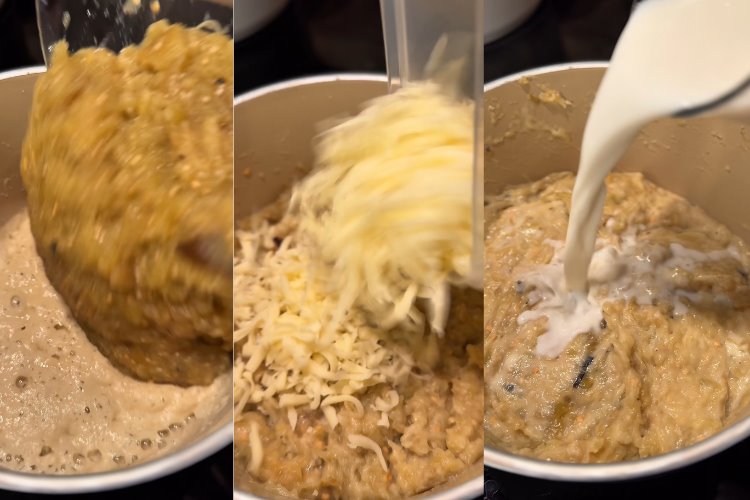 Beğendi için; yağımızı eritince unu ilave edip yakmadan kavuruyoruz. Üzerine kabuklarını temizlediğimiz patlıcanları ve sonrasında da kaşar peyniri ekliyoruz. En son sütünü döküp karıştırıyoruz.