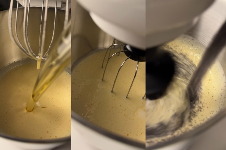Son olarak da un, kabartma tozu ve vanilyayı ekleyip güzelce çırparak homojen hale getiriyoruz.