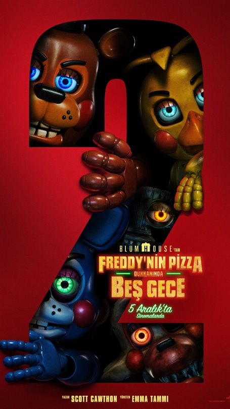 Emma Tammi’nin yönettiği ‘Freddy’nin Pizza Dükkanında Beş Gece 2’ (Five Nights at Freddy’s 2), serinin doğaüstü kâbusunu bir yıl sonrasına taşıyarak gerilimi artırıyor. Freddy Fazbear’s Pizza’daki olayların ardından ortaya çıkan yeni tehdit, gizemin daha da derinleşmesine neden olurken hayatta kalmak her zamankinden zor hâle geliyor. Josh Hutcherson ve Elizabeth Lail’in yer aldığı film, korku–gerilim severlere karanlık bir devam hikâyesi sunuyor.