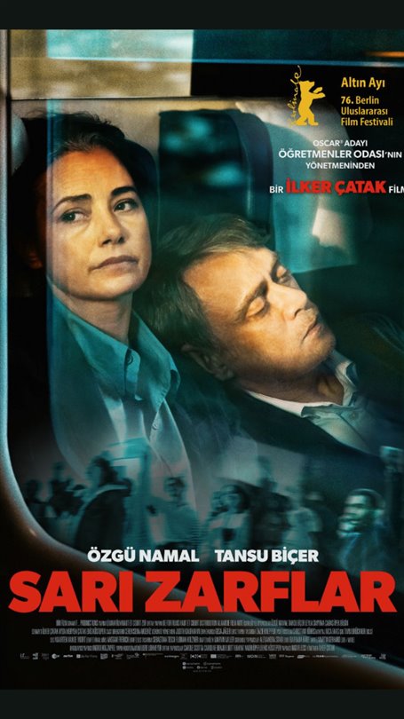 İlker Çatak’ın yönettiği, Özgü Namal ve Tansu Biçer’in başrollerinde yer aldığı ‘Sarı Zarflar’, bir gecede hayatları altüst olan sanatçı bir çiftin zorlu mücadelesini anlatıyor. Sahneledikleri oyunun ardından hedef gösterilerek işlerini ve evlerini kaybeden Derya ve Aziz, kızlarıyla birlikte yeni bir hayata tutunmaya çalışır. Film, sanat, etik değerler ve aile bağları arasında sıkışan karakterlerin içsel çatışmalarını güçlü bir dramla ele alıyor.
