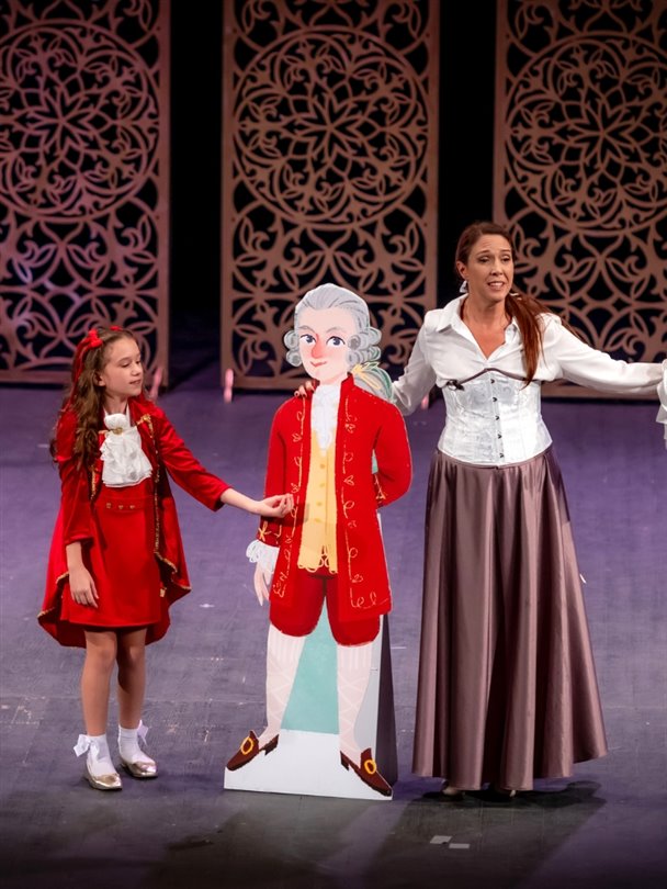‘Bay Majör’ün Müzik Yolculuğu – Mozart’; sahnede piyano, keman, viyolonsel ve soprano tarafından canlı olarak seslendirilen eserlere çocukların eşlik etmesini sağlayarak etkileşimli bir yapıda ilerliyor.