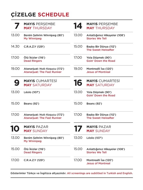Kanada sinemasının farklı dönem ve anlatı biçimlerini bir araya getiren bu özel seçki, bireysel kimlik arayışından kolektif hafızaya, toplumsal kırılma anlarından kişisel hikâyelere uzanan geniş bir perspektif sunuyor.