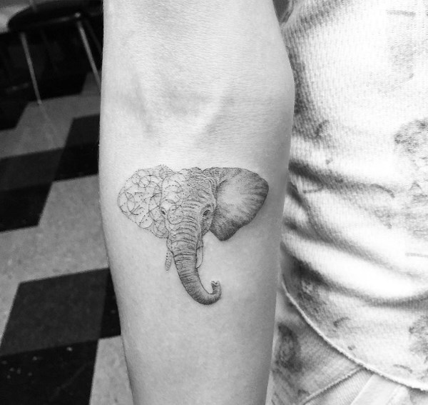 Güzel manken lob kesim yaptırmadan önce koluna fil dövmesi yaptırdı. Bu fil dövmesi daha gerçekçi gözükmesi için yarım iğne denilen özel bir teknikle yapılmış.