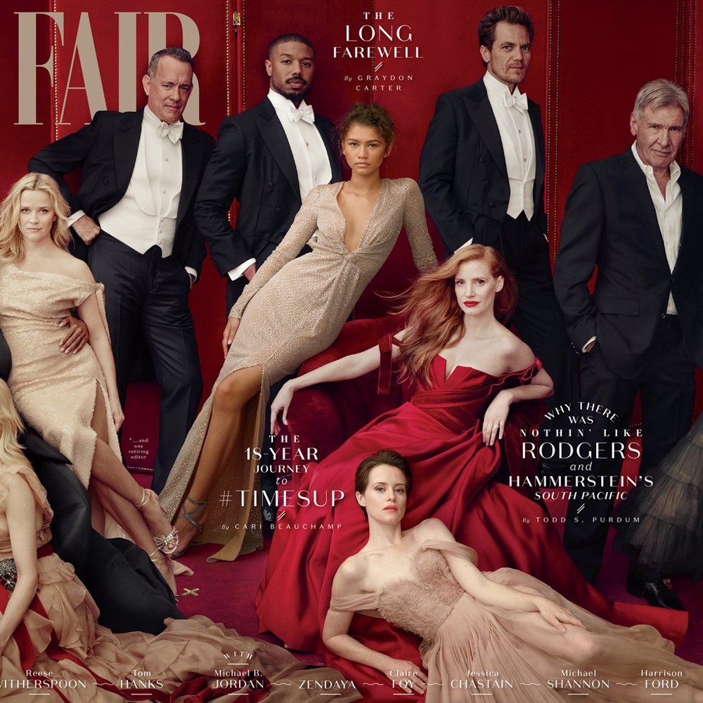 Kapakta bu yılın yükselen yıldızları Zendaya, Gal Gadot ve Claire Foy dikkat çekerken, “Big Little Lies” dizisiyle çok konuşulan Nicole Kidman ve Reese Witherspoon, Altın Küre törenindeki konuşmasıyla övgüleri toplayan Oprah Winfrey yer alıyor. Geçtiğimiz yıl geleneğini bozarak kapağını sadece kadın oyunculara yer veren dergi, bu yıl yeniden erkek oyuncularla çekimi gerçekleştirdi. Kapakta Tom Hanks, Harrison Ford, Robert De Niro, Michael B. Jordan gibi yılın öne çıkan aktörleri yer alıyor.