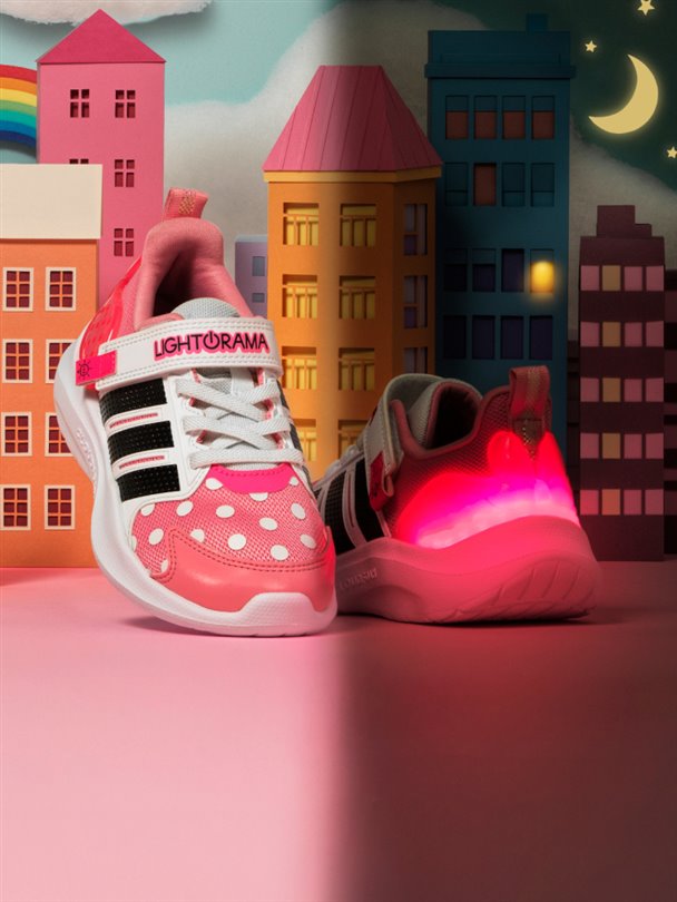 Çocukların hareketli dünyasına uyum sağlamak üzere tasarlanan adidas Lightorama, 1 milyon adıma kadar pil ömrüyle uzun süreli performans vadediyor.