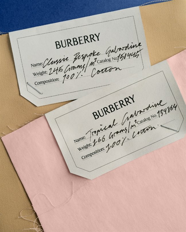Gabardin, 1879 yılında Thomas Burberry tarafından icat edilmiş ve hafif, nefes alabilen ve suya dayanıklı özellikleri sayesinde kısa sürede beğeni kazanmıştı. 1893 yılına gelindiğinde, markanın imza kumaşı farklı ağırlık seçenekleriyle sunulmuş ve müşterilerin kendi ülkelerinde ya da seyahatlerde karşılaşabilecekleri farklı hava koşullarına uyum sağlayacak şekilde geliştirilmişti.