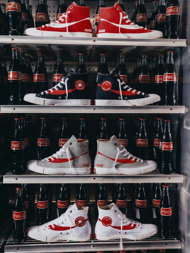 Converse x Coca-Cola koleksiyonundan kırmızı çiftin 9 Ekim'de, siyah ve gri çiftlerin ise daha sonra piyasaya sürülmesi planlanıyor.