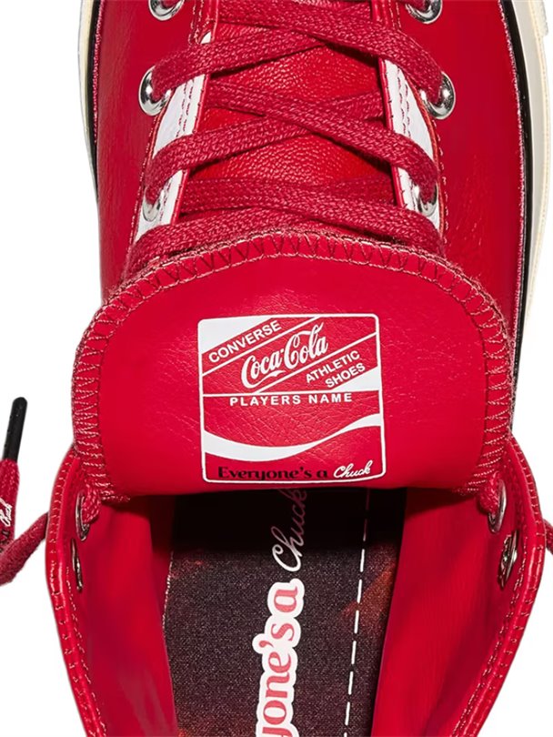Koleksiyonda kırmızı, kutup ayısını simgeleyen beyaz, Diet Coke'a gönderme yapan parlak gümüş ve Coke Zero'yu temsil eden siyah olmak üzere dört farklı renkte Chuck 70 yer alıyor. Kırmızı çift, piyasaya sürülecek ilk model olacak. Kırmızı deri üst kısım, Coca-Cola'nın omurgasından uzanan ve alttaki iki deliği saran logoyu oluşturan ekstra bir deri parçasıyla çarpıcı bir şekilde bölünmüş. Dış tabanlar, orijinal Coca-Cola cam şişelerinin yarı saydam tonuna saygı duruşunda bulunuyor. Eşsiz bir detay ise ferahlatıcı kola grafikleriyle süslenmiş iç taban… Orta kısımlardaki markalı daireler, şişe kapaklarından esinlenerek eğlenceli bir dokunuş katıyor.