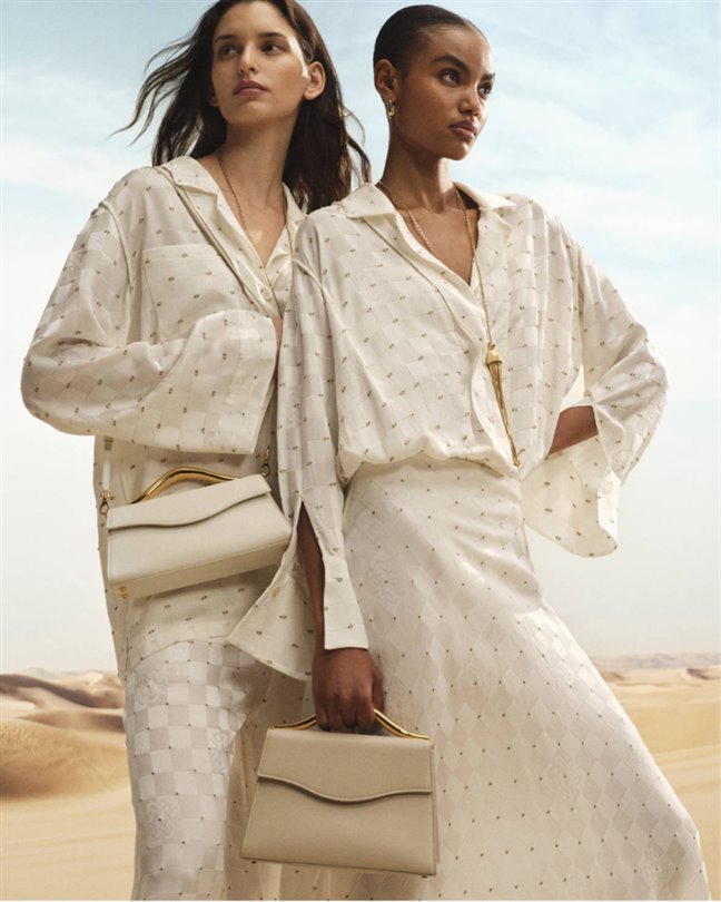 İkonik dalgalı el çantası, markanın heykelsi estetiğini güçlendiren imza bir aksesuar olarak geri dönüyor. Minimalist yapısı, zarif anlatımı ezmeden akıcı silüetleri tamamlıyor. Aksesuarlar, kapsül koleksiyonunun çeşitli görünümlerini kusursuz bir şekilde birleştiren, bütünleyici hikaye anlatımı unsurları olarak işlev görüyor.