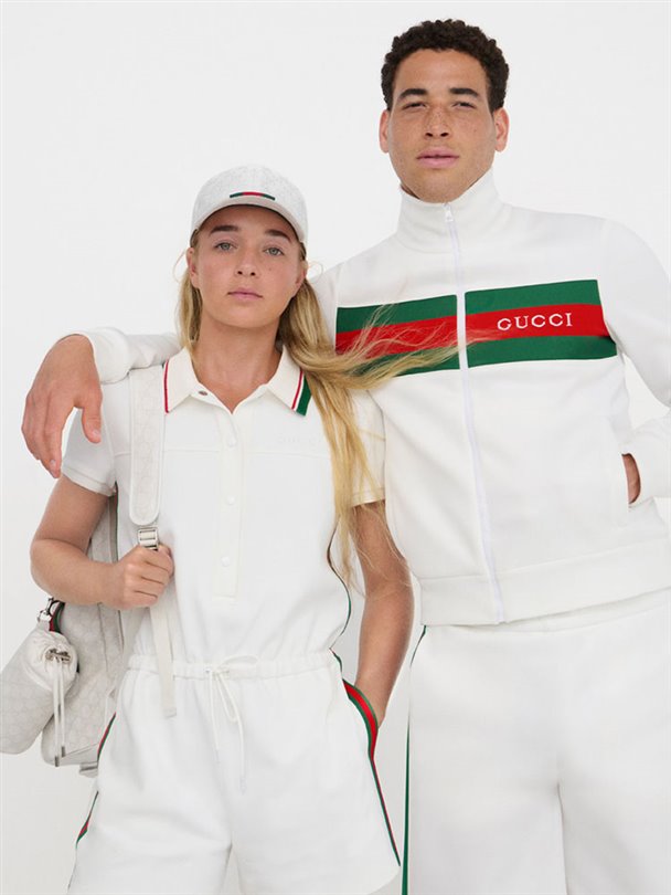 Geleneksel tenis kıyafetlerini çağdaş zarafetle yeniden tasarlayan Gucci Tenis koleksiyonunda şık elbiseler, sofistike pololar, atletler ve trikolarla eşleştirilmiş şort ve etekler de dahil olmak üzere erkekler ve kadınlar için uyumlu setler yer alıyor. Şapka, bileklik, deri eşyalar gibi aksesuarlar ise kıyafetleri tamamlıyor. Öne çıkan parçalar arasında tamamı beyaz üzerine beyaz GG monogramı ve Web şerit ayrıntılarıyla süslenmiş yeni bir spor çantası, raket sırt çantası, raket çantası ve ayakkabı tutucu yer alıyor. İkonik Tennis 1977 spor ayakkabıları, GG monogramına sahip Gucci Ace spor ayakkabılarının yanı sıra beyaz kanvas ve deri renkte görünüyor.