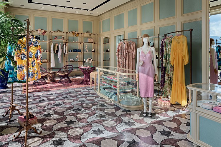 Müşterilerin kendilerini rahat hissetmeleri için tasarlanan çağdaş ve lüks mağaza; boş alan kullanımıyla da dikkat çekiyor. Gucci'nin koleksiyonlarını karakterize eden zarif ve çağdaş eklektizme uygun olarak mağaza, geleneksel ile modernin, endüstriyel ile romantiğin birleşimini yansıtıyor. Osmanlı dönemine saygı duruşu niteliğindeki mozaik döşeme ve işlemeli ahşap masalarla, eskitilmiş pirinç armatürler hoş bir kontrast oluşturuyor. Hasır mobilyalar, eski oryantal kilimler ve gösterişli iç ve dış mekan bitkileri de mağazada hemen dikkat çekiyor.