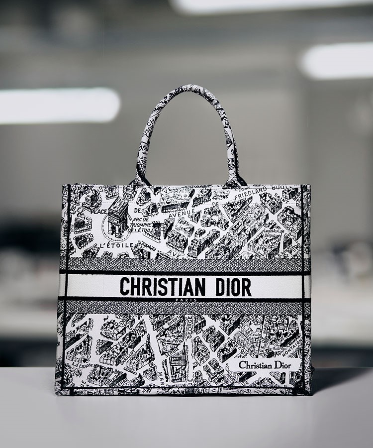 Fular üretiminde sonsuz bir titizlikle ve hassasiyet gerektiren hareketlerle ipekten bir kareye aktarılan nazik skeçler, adeta olağanüstü bir tabloyu resmediyor. Sembol haline gelen Dior Book Tote çantalar ise Dior atölyelerinde kusursuz bir şekilde hayata geçirilen grafik nüanslarla ön plana çıkıyor. Yenilikçi bir üç boyutlu işleme tekniğiyle üretilen bu eşsiz görsel ve doku efekti, Paris sokaklarında büyülü bir gezintiyi kutluyor.