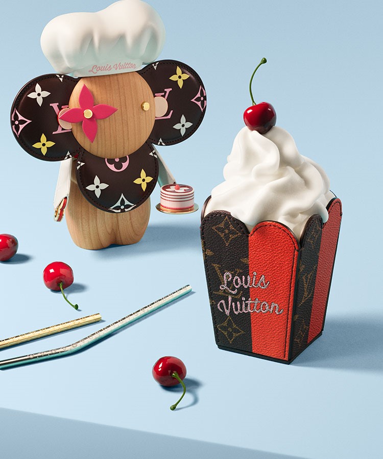 Sweet Surprises teması ise, mücevher koleksiyonunun bir parçası ola Color Blossom serisinden bir kolyeyi içeriyor ve canlı renkleri aşılamak için LV Remix koleksiyonundan sarı Monogram desenli rugan deriden en yeni Coussin çanta ve pastel leylak renginde Rosalie bozuk para cüzdanı yer alıyor.