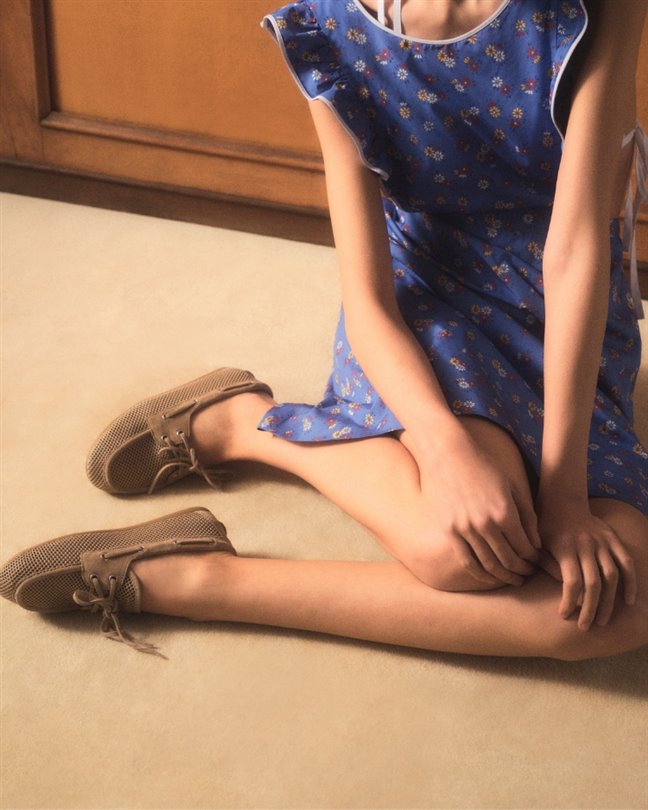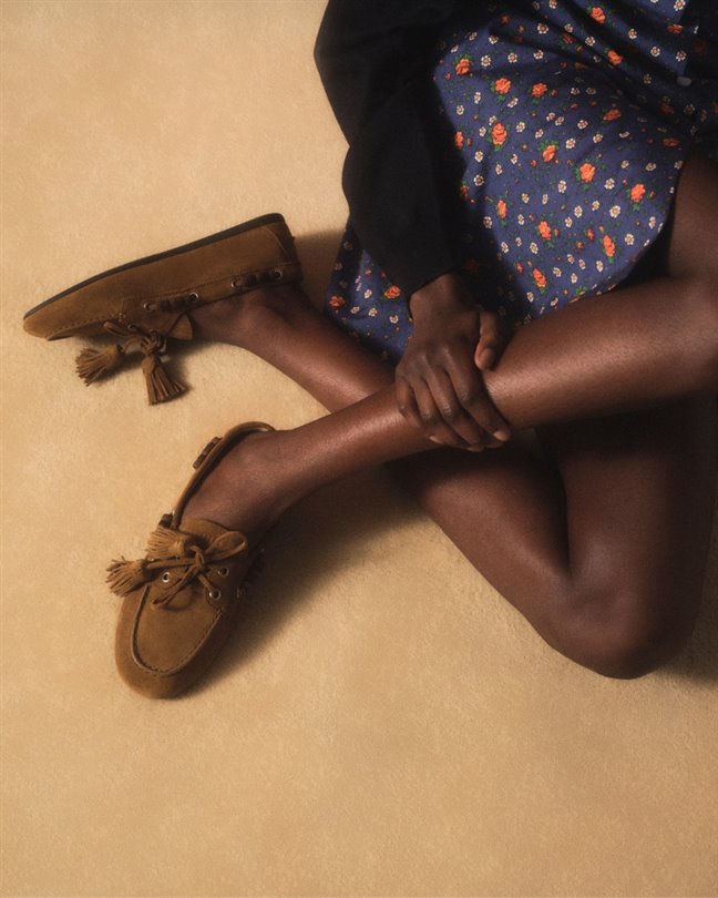 Denizci stilinin klasik bir formunun yeniden yorumlandığı bu siluet, daha yumuşak ve rahat bir görünüm sunuyor. Yapısı son derece özenli bir anlayışla şekilleniyor: Yalın bir mokasen formu, hafif yuvarlatılmış bir burun ve metal halkalardan geçirilen deri bağcıklar…