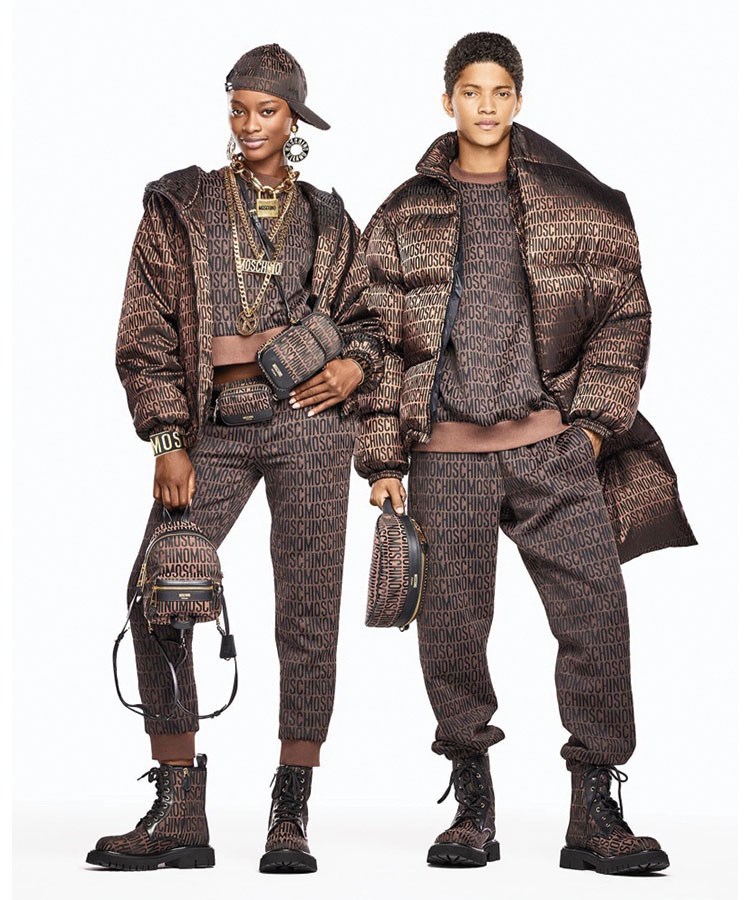 Modeller Mayowa Nicholas, Lulu Tenny ve Jeranimo van Russel, koleksiyon fotoğraflarında iddialı tasarımlarla yer alıyor. Klasik tişörtlerden şişme montlara, botlara ve kova şapkalara kadar ikonik Moschino markasıyla süslenmiş basit ama şık parçalar; kalabalığın arasından sıyrılmanızı sağlayacak.