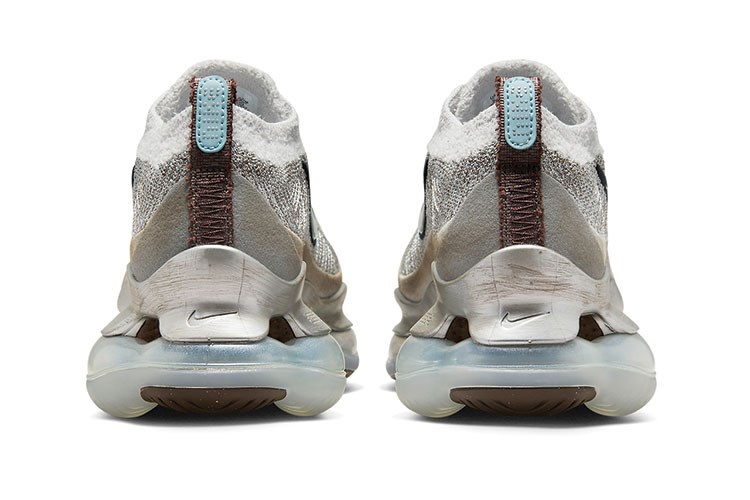 Nike’ın COVID-19 salgını sırasında yaratılan ilk spor ayakkabısı olan Air Max Scorpion, nötr bir renk paletiyle geliyor. Ayakkabının üst kısmında soluk bej-gri Flyknit taban bulunurken her iki yanındaki metalik Swoosh'lar kontrast oluşturur. Tema orta tabanda devam ederken, metalik yüzeylere bağcık sistemi ve yaka boyunca tüylü detaylar eşlik ediyor.