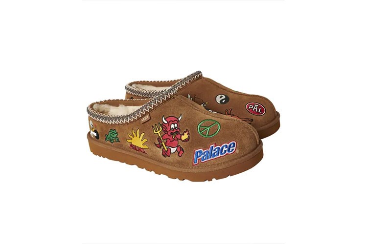 Sokak giyim markası Palace ve sevilen ayakkabı markası Ugg, bu sezonun olmazsa olmaz silueti Tasman Slipper'ı yeniden tasarlamak için güçlerini birleştirdi. Kahverengi ve yeşil süet olmak üzere iki ana renk seçeneğiyle gelen rahat, alçak bilekli bu yeni ayakkabı; çizgi film karakterleri, bebek şeytan, gün batımı, ördek ve Palace amblemi gibi canlı yamalarla süslenmiş bir süet üst kısma sahip. Ayakkabının içi ise UGG'ın klasik tüylü içini devralıyor. Kış için yapılan iş birliği; her renk grubuyla eşleşen bir çift eldiven ve Palace'ın baş harfi ‘P’ şeklindeki beyaz koyun postu halıyla tamamlanıyor.